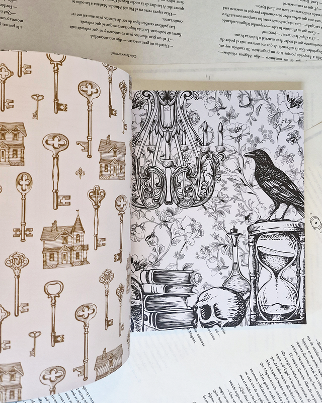 Libro con más de 100 páginas para colorear de temática dedark academia